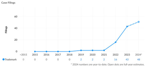 自2020年以来,HSP律所共代理644起商标侵权案件,位居商标侵权代理案件数量排行榜第二名,代理案件数量如下图所示: