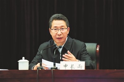 图为申长雨局长作工作报告 本报记者 蒋文杰 摄